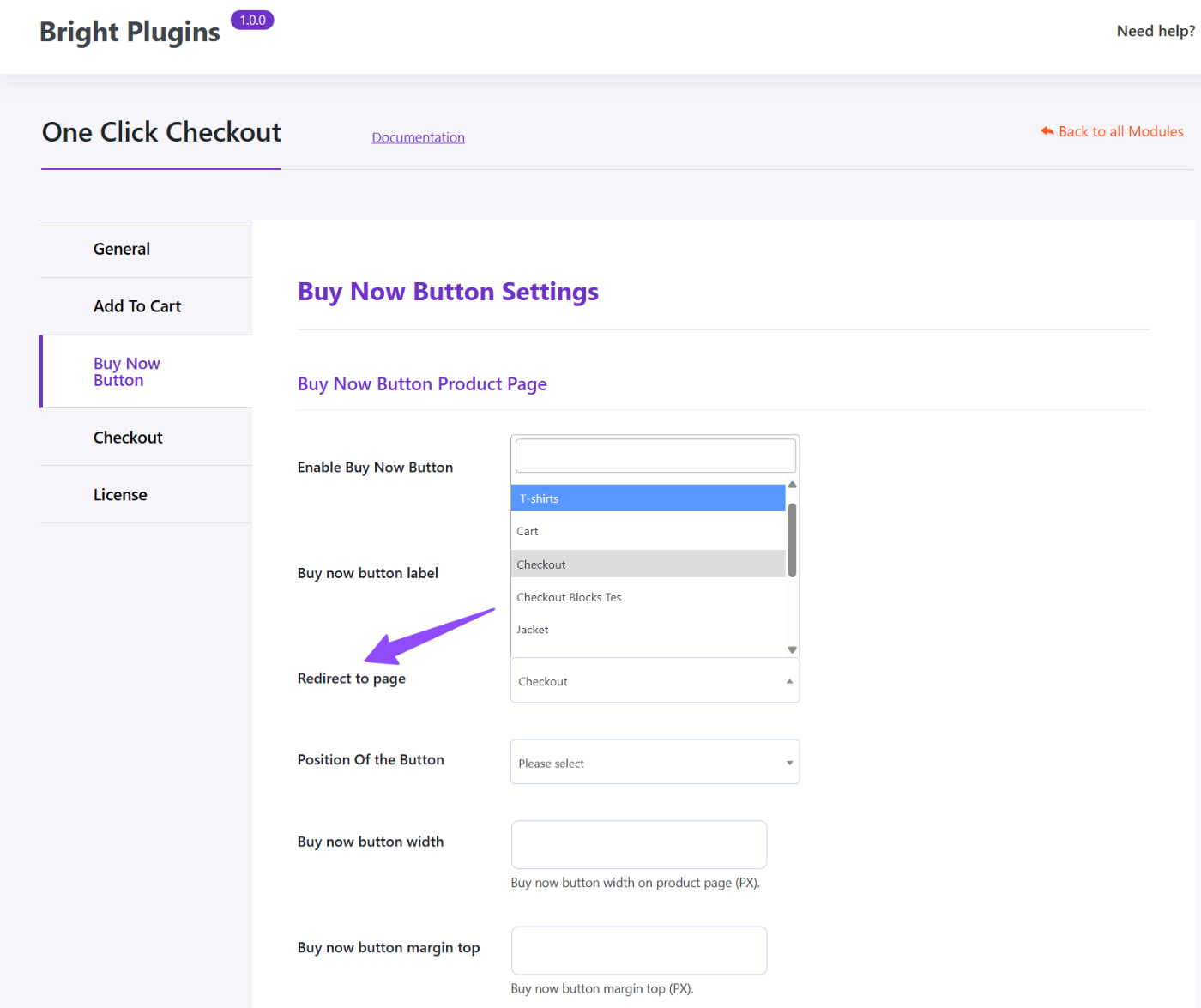 With One Click Checkout, you can offer a direct Buy Now action that sends the user straight to the page you choose (Checkout, Cart, My Account, or a custom URL).
