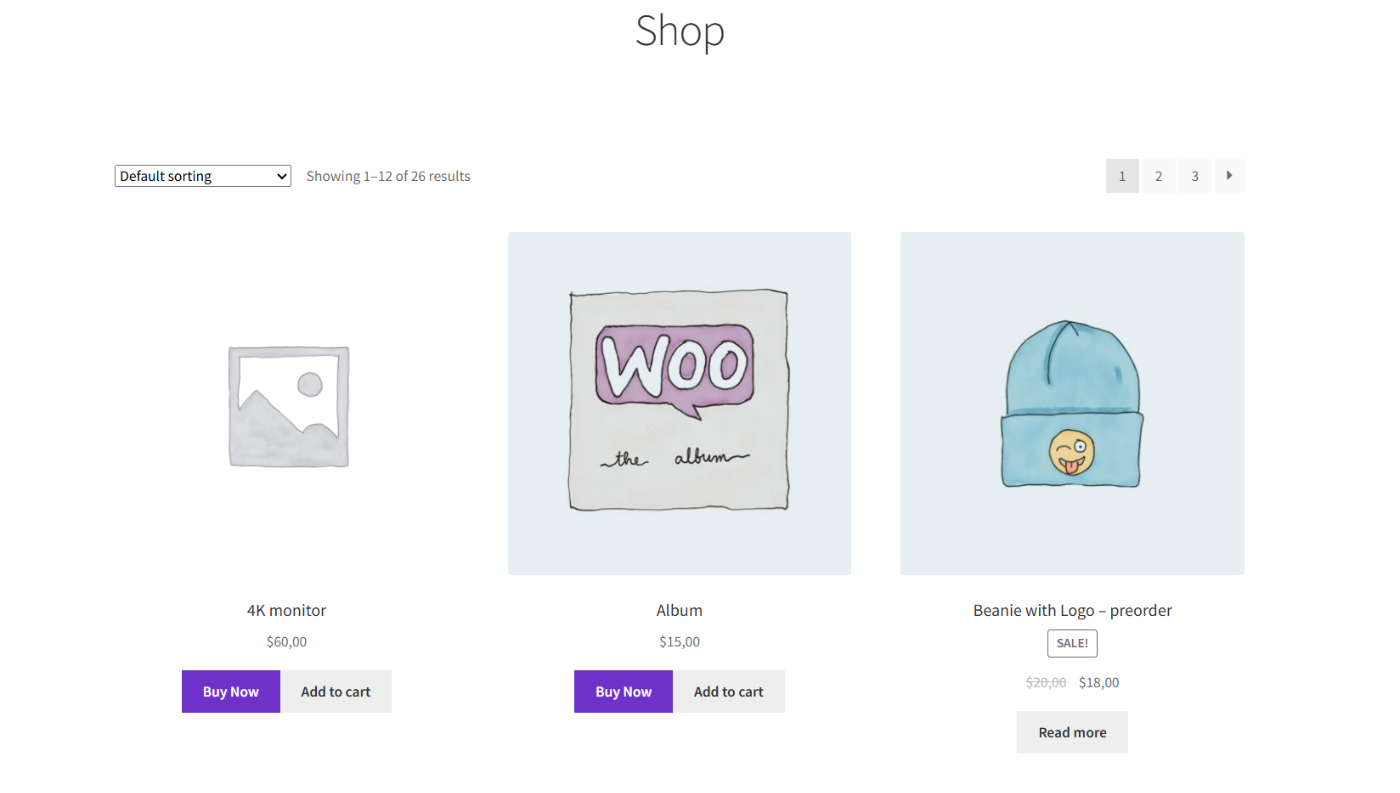 When the Buy Now button for the Shop Page is enabled, simple products display a second button next to “Add to cart”.