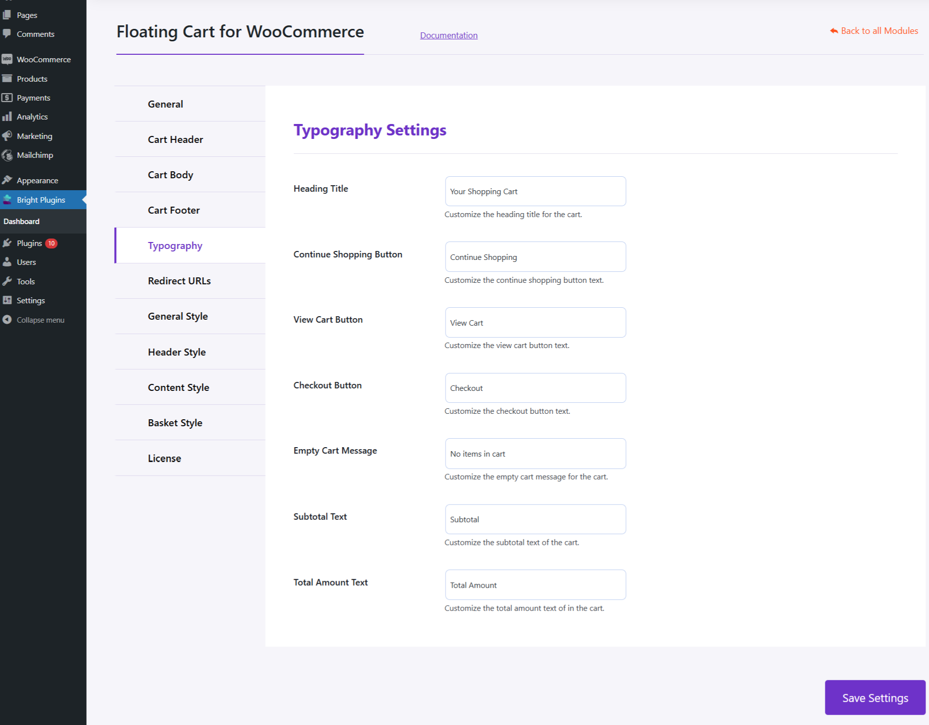 These settings help provide clarity and enhance the shopping experience by customizing the footer and text elements in the Floating Cart.