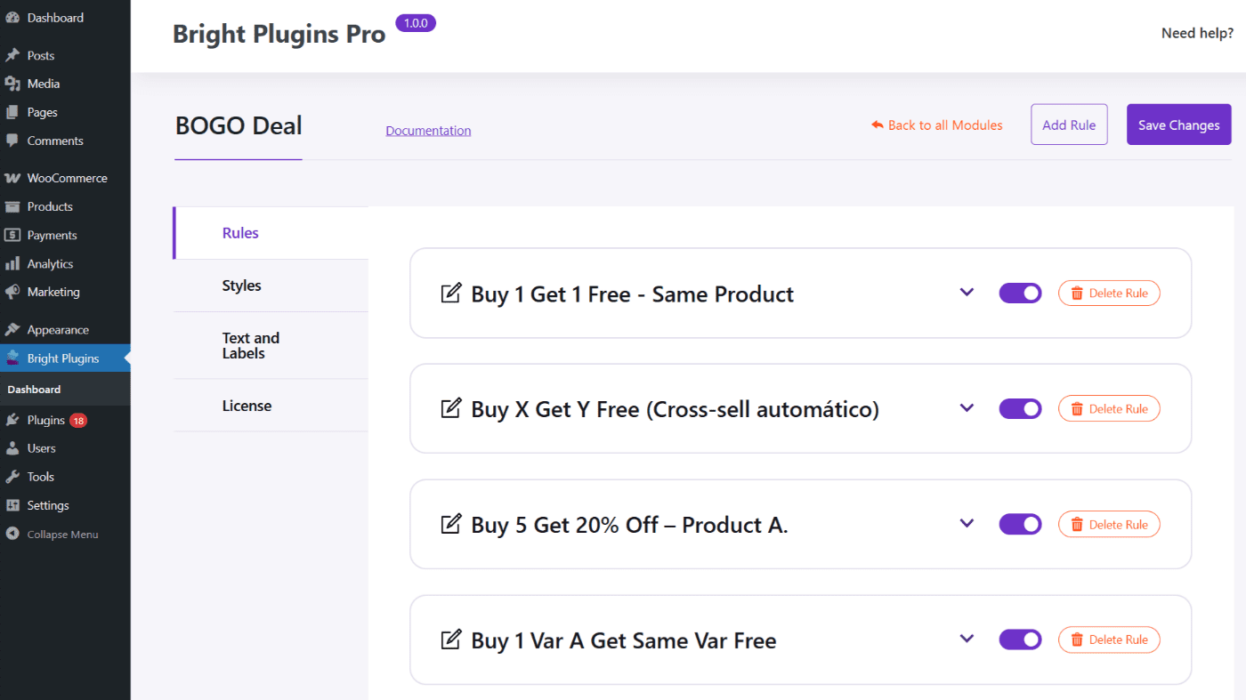 This guide shows you how to open BOGO Deal and create a simple Buy 1 Get 1 Free rule for the same product, then test it on the frontend.