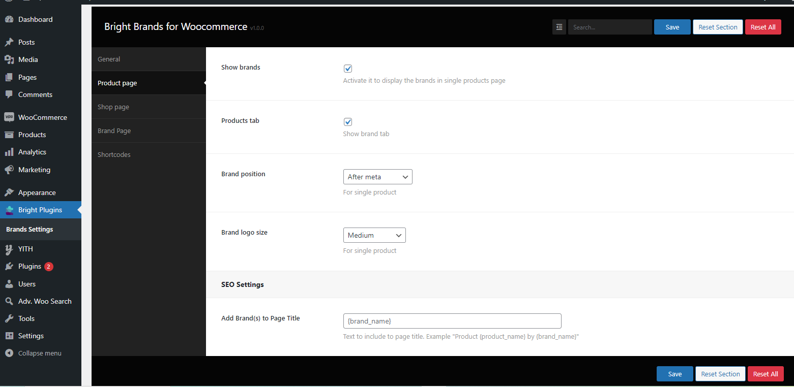 Navigate to Plugin settings - Product Page to change the positioning of the brand logo in single product page
