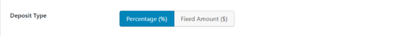 Define whether the deposit will be a percentage (%) of the product price or a fixed amount ($).