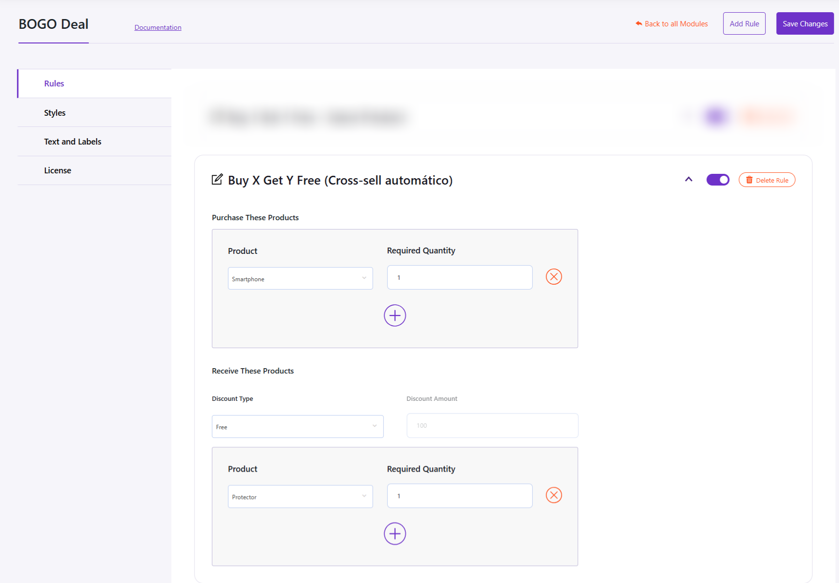 - Vete a Bright Plugins Pro → BOGO Deal → Rules .
