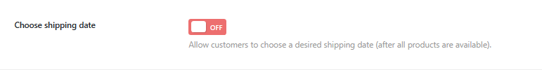 2. Ensure the option below under "Choose Shipping Date" is turned off for "Allow customer to choose desired shipping date (after products are available).
