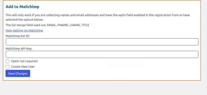 Isso só funcionará se você estiver coletando nomes e endereços de e-mail e tiver o campo de optin ativado no formulário de registro ou tiver marcado a caixa de seleção de optout.